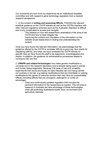 Kolling Institute's Institutional Biosafety Committee sent this submission for the phase 1 consultation of the third review directly to the secretariat.