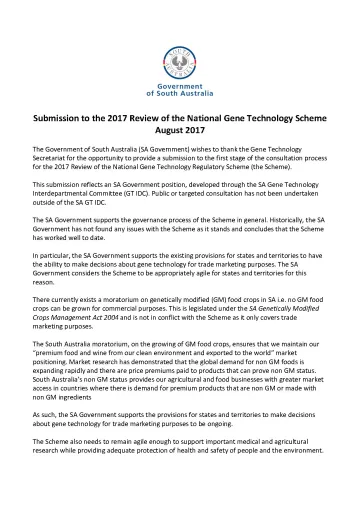 2017 review – Consultation phase 1 – Submission – South Australian Government