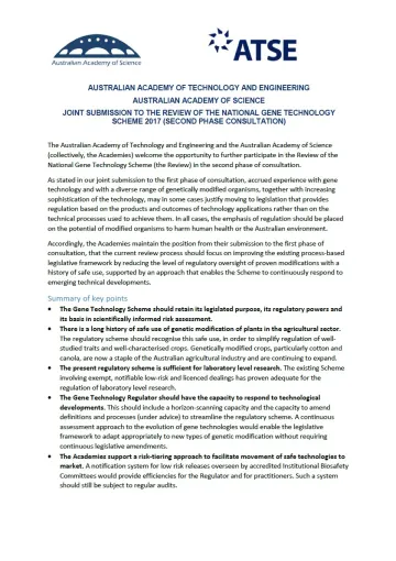 The Australian Academy of Science and the Australian Academy of Technology and Engineering sent this joint submission for the phase 2 consultation of the third review directly to the secretariat.