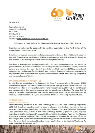 GrainGrowers sent this submission for the phase 3 consultation of the third review directly to the secretariat.